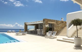 open-plan outdoor terrace with shaded kitchen, a large bar by the pool, built-in bbq, dining table, shaded lounging area as well as a second shaded dining area, 3 independent guesthouse terraces, spacious terrace with large swimming pool and sun loungers, pool bathroom with changing room, Tennis/Padel court, Jacuzzi, Heliport, direct access to the sea just through fiew steps and a small pier.